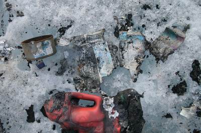 Wir werden bei unseren Erstbesteigungen in Grönland unberührte Natur erleben. Diese wollen wir schützen und bewahren, damit auch künftige Generationen sie in ihrer unveränderten Form erleben können. Grönland gehört zu den vom Klimawandel am sichtbarsten betroffenen Gebieten der Erde. Im International Polar Year 2007/2008 wollen wir mit unserern sportlichen Expeditionszielen auch mehr Aufmerksamkeit für die Erwärmung der Arktis und der damit verbundenen dramatischen Folgen erwecken. In diesem Zusammenhang werben wir im Rahmen der Arctic Summits Expedition für die Nutzung regenerativer Energiequellen. Solarenergie: Wir werden in Grönland neueste Technologie verwenden, um aus Sonnenenergie Strom für unsere Kameras, Navigations- und Kommunikationsgeräte zu gewinnen. Diese Nutzung der Sonnenenergie soll uns nicht nur dabei helfen unsere sportlichen Expeditionsziele zu dokumentieren und zu kommunizieren, sondern auch als Hinweis auf die Effizienz der Nutzung von Solarenergie dienen. Recycling: Wir führen unsere Expedition im "Zero-Impact" Stil durch – das heißt wir hinterlassen keinerlei (= zero!) Material oder Müll. Bereits bei der Planung legen wir großen Wert darauf, Müll zu vermeiden. Insbesondere bei der Verpackung unseres 5 Wochen Vorrates achten wir auf äußerste Minimierung des verwendeten Materials. Schließlich verringert dies auch in erheblichem Masse das durch uns zu tragende Gewicht. Wir werden keinerlei Müll oder Ausrüstungsgegenstände in Grönland zurücklassen. Organische Abfälle werden wir in Island entsorgen und sämtliches Recycling Material zur fachgerechten Entsorgung nach Deutschland zurückführen. So nicht!!! Mülldeponie und Expeditionsmüll in Grönland. |