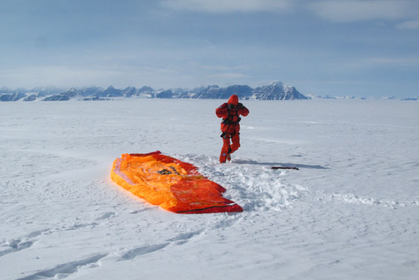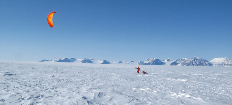 ![]() Auf dem Christian IV Gletscher: stürmischer Wind - jetzt oder nie! |