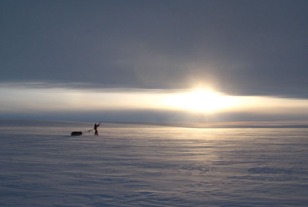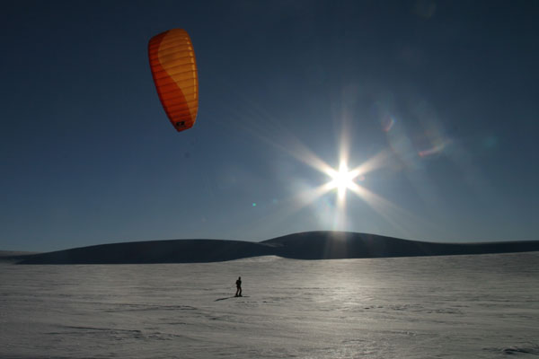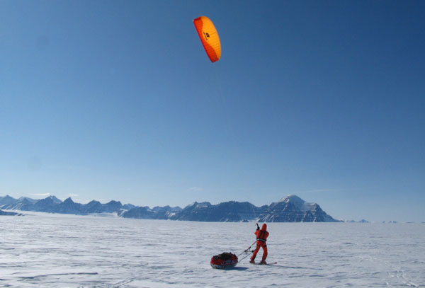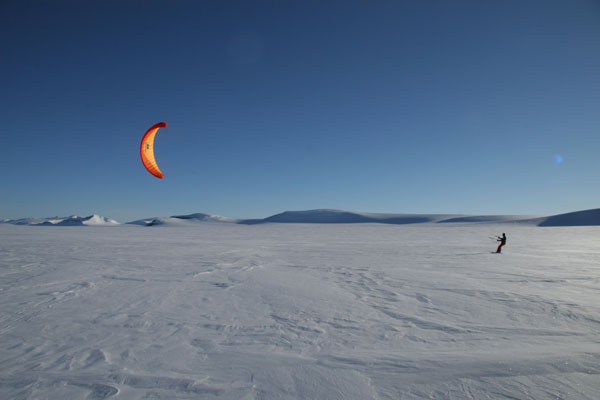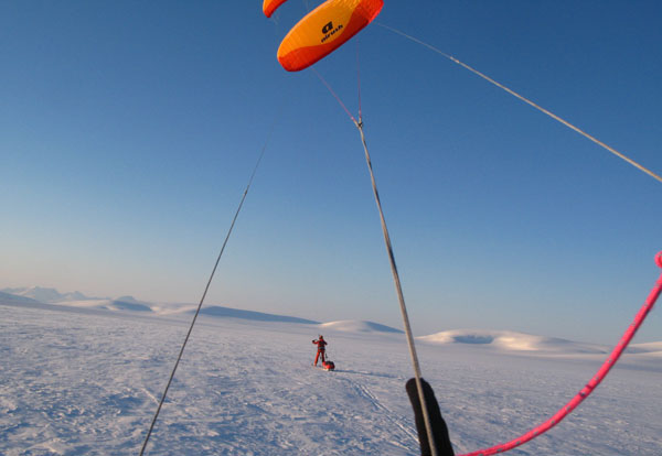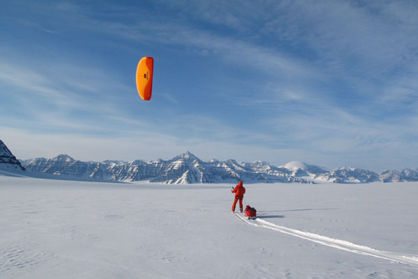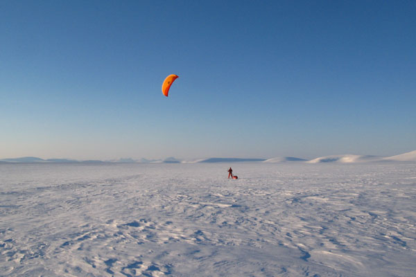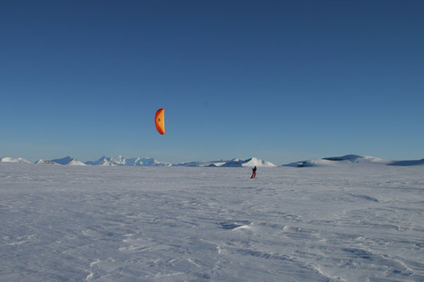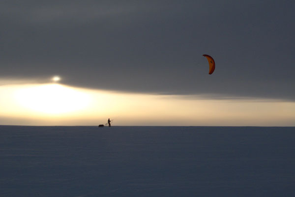 ![]() ...um mit der 120kg schweren Pulka zu kiten. |